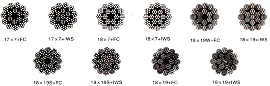 | 鋼絲繩結(jié)構(gòu)(Construction):17×17+FC 17×17+IWS 18×7+FC 18×7+IWS 18×19W+FC 18×19W+IWS | |||||||
